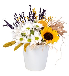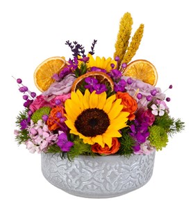 Saksıda Karışık Bahar Çiçekleri Aranjmanı