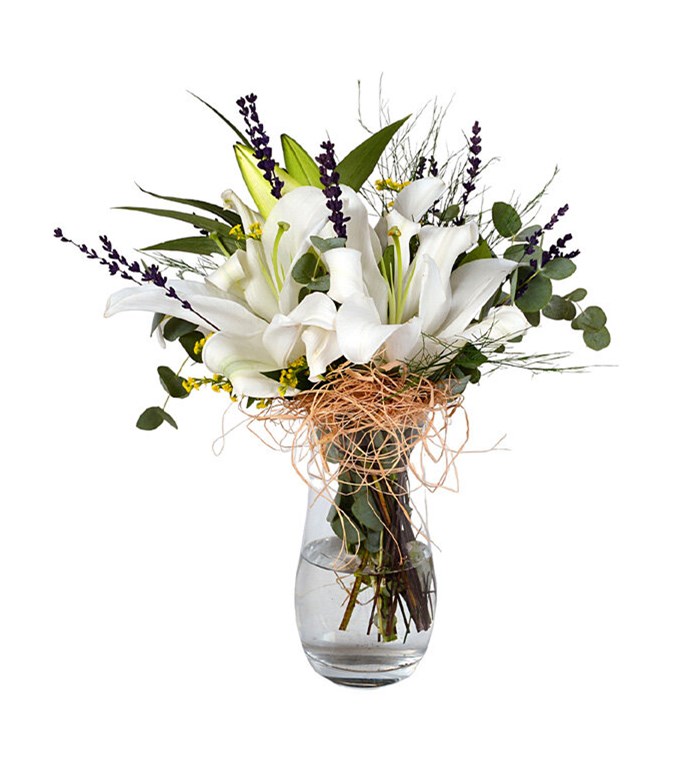 Ürün Detayı: Özenle hazırlanan Kokulu Beyaz Lilyum Vazosu, birbirinden taze çiçeklerden oluşur. Çiçeğin yaklaşık yüksekliği 30 - 40 cm boyutlarındadır.