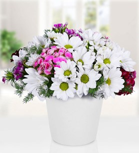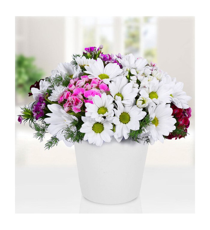 Ürün Detayı: İç açıcı görselliği ile Hüsnüyusuflu Papatya Vazosu, birbirinden taze çiçeklerden oluşur. Çiçeğin yaklaşık yüksekliği 25 - 30 cm boyutlarındadır.