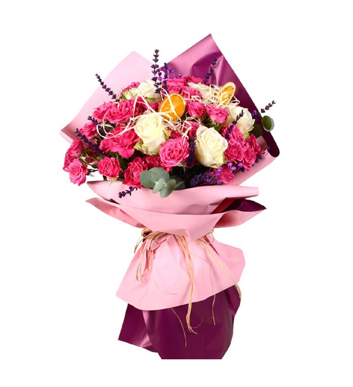 Ürün Detayı: Renklerin ahengini sunan Pembe ve Beyaz Gül Buketi, taze çiçeklerden oluşur. Buketin yaklaşık yüksekliği 35 - 45 cm boyutlarındadır.