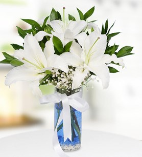 Özel tasarımı ve şık görünümü ile Vazoda Beyaz Kazablanka Lilyum, birbirinden taze çiçeklerden oluşur. Çiçeğin yaklaşık yüksekliği 30 - 40 cm boyutlarındadır.