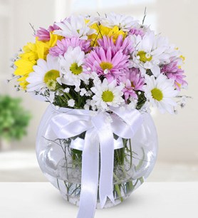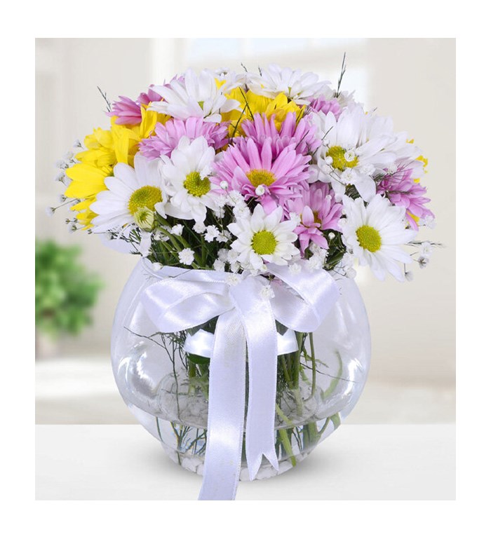 Ürün Detayı: Fanusta Renk Ahengi Papatyalar, birbirinden renkli ve taze papatyalardan oluşur. Çiçeğin yaklaşık yüksekliği 25 - 30 cm boyutlarındadır.