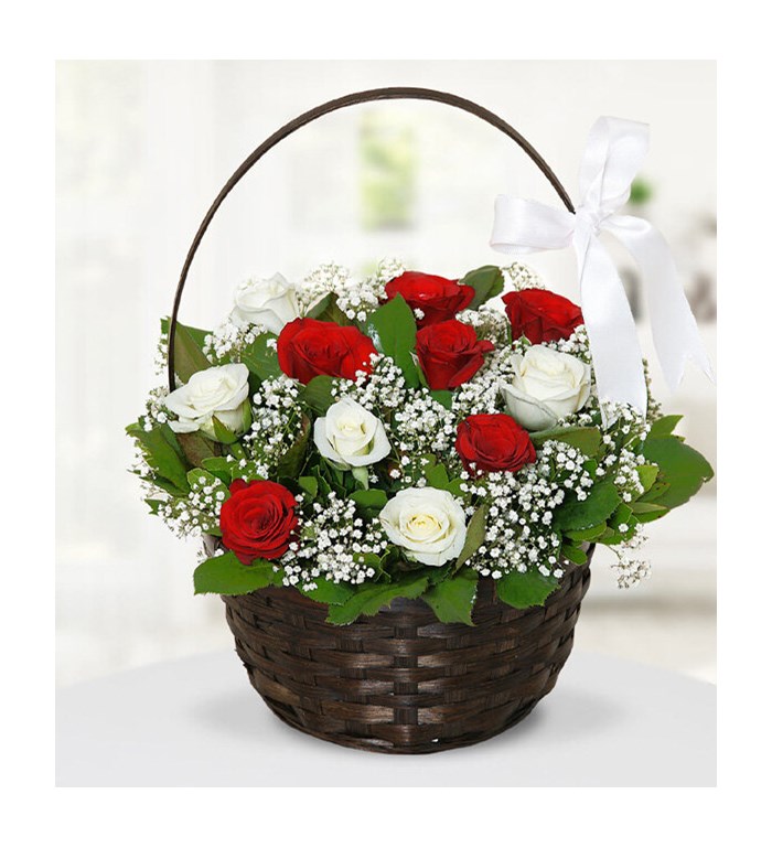 Gösterişli tasarımı ile Çiçekli Gül Sepeti, taze renkli güllerden oluşur. Çiçeğin yaklaşık yüksekliği 25 - 30 cm boyutlarındadır.