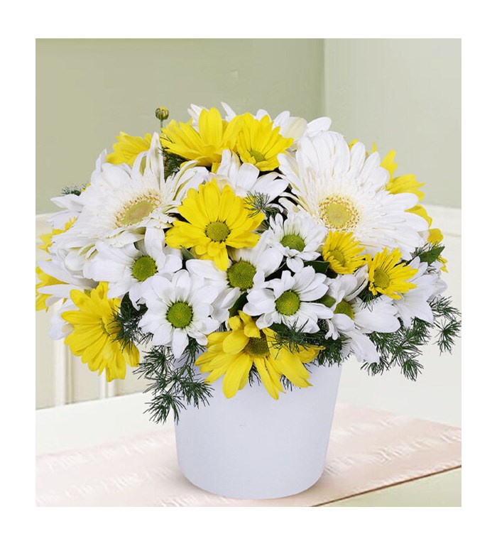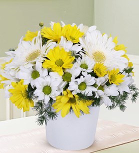 Ürün Detayı: Sade ve özenle hazırlanan tasarımı ile Papatya Gerbera Aşkı, birbirinden taze çiçeklerden oluşur. Çiçeğin yaklaşık yüksekliği 25 - 30 cm boyutlarındadır.