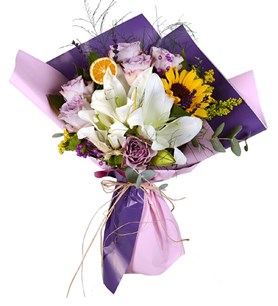 Buket Lilyum Lila Gül Ayçiçeği; sevgi, zarafet ve enerjiyle hazırlanmış özel bir seçenektir. Siz de sevdiklerinize anlamlı bir sürpriz yapmak için hemen sipariş oluşturabilirsiniz!