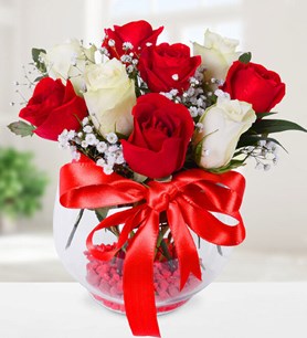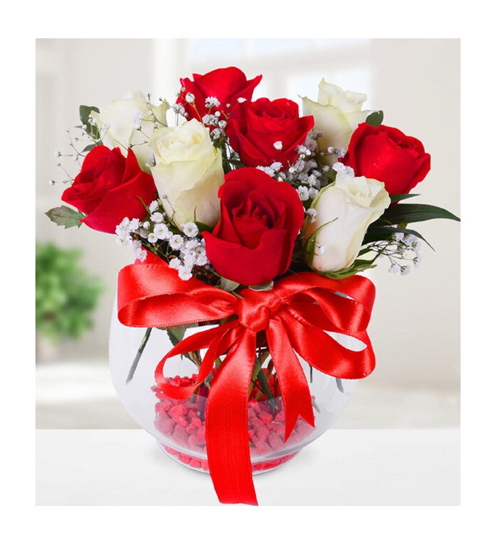 Eşsiz tasarımı ile Akvaryumda 9 Gül, birbirinden taze ve canlı güllerden oluşur. Çiçeğin yaklaşık yüksekliği 25 - 30 cm boyutlarındadır.