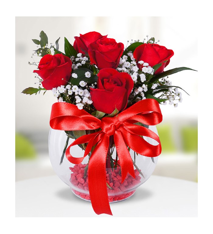 fanus içerisinde 5 adet gül ve renkli taşlar ürün stoğuna göre renk değişmektedir