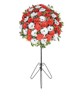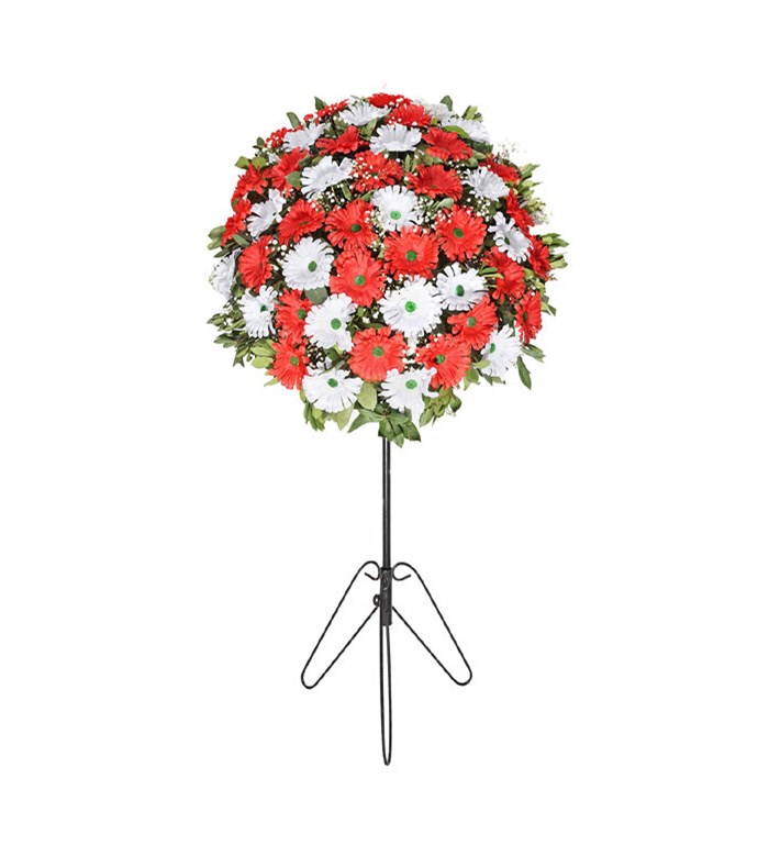 Şık görünümü ile dikkat çeken Beyaz Kırmızı Gerbera Düğün Çiçek Sepeti, özenle seçilmiş yapay çiçeklerden oluşur.