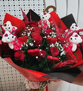 5 adet ayıcık 8 adet çikolata 8 adet gül